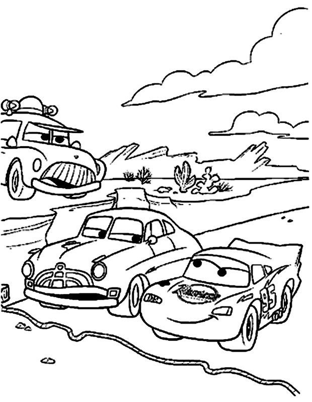 Descriere: Coloreaza plansa care ii prezinta la start pe Lightning McQueen si Doc Hudson sub stricta supraveghere a lui Sheriff.