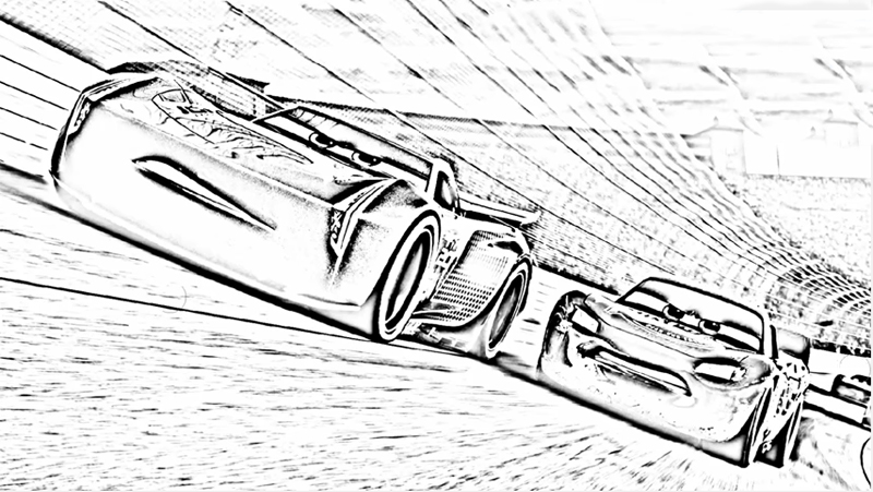 Descriere: Plansa de colorat din Cars 3 cu Fulger McQueen depasit de Jackson Storm.
