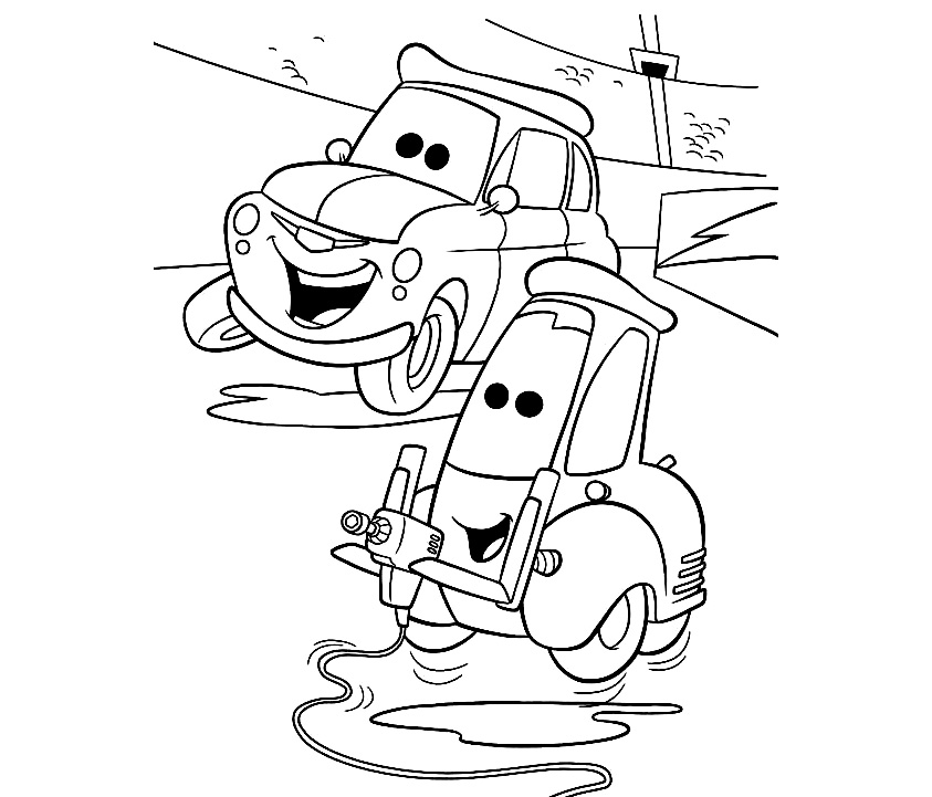 Descriere: Coloreaza plansa cu Guido si Luigi din desenele animate Cars.