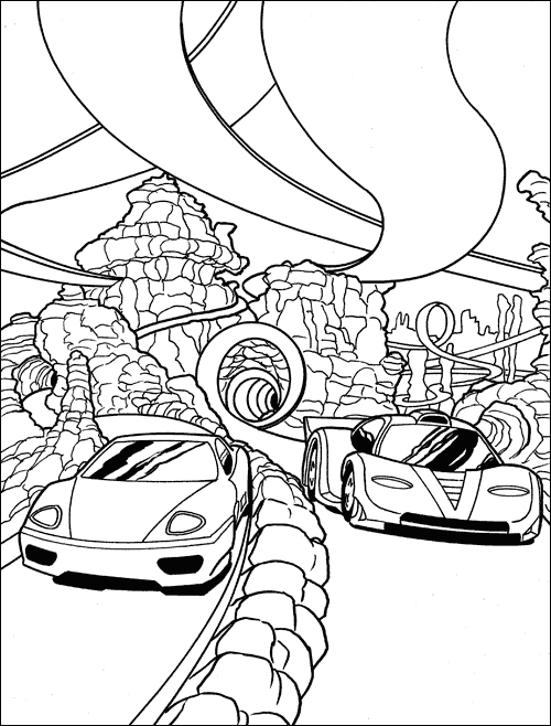Descriere: Plansa de colorat cu o intrecere de masini.