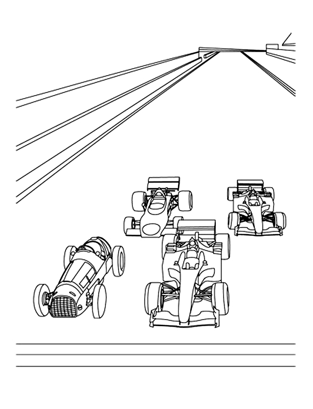 Descriere: Plansa de colorat cu masini din Formula 1 din mai multe perioade.