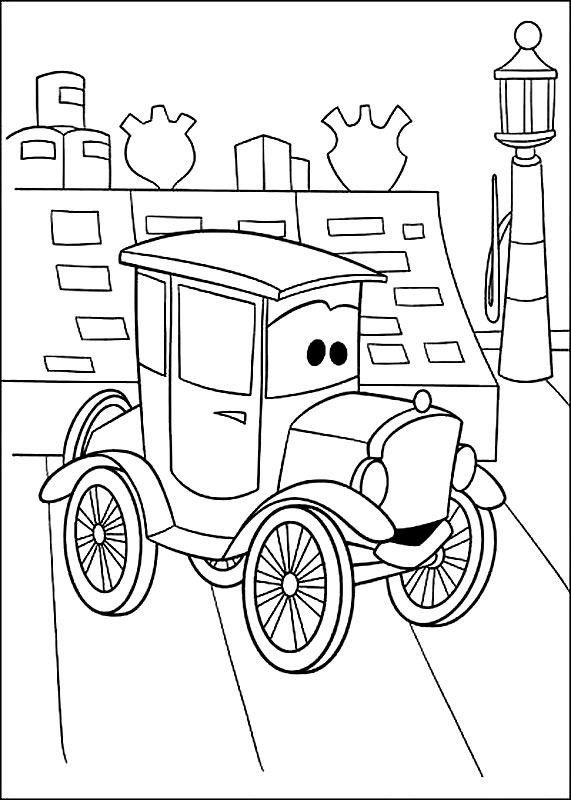 Descriere: Coloreaza plansa cu o masina batrana pe nume Lizzie care apare in desenele animate Cars de la Disney.