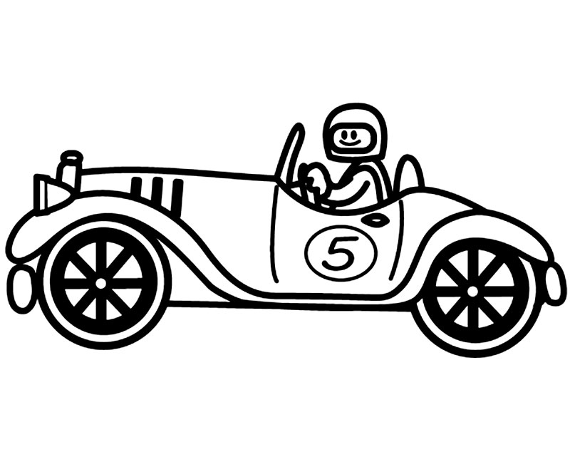 Descriere: Plansa de colorat cu o masina de curse veche.