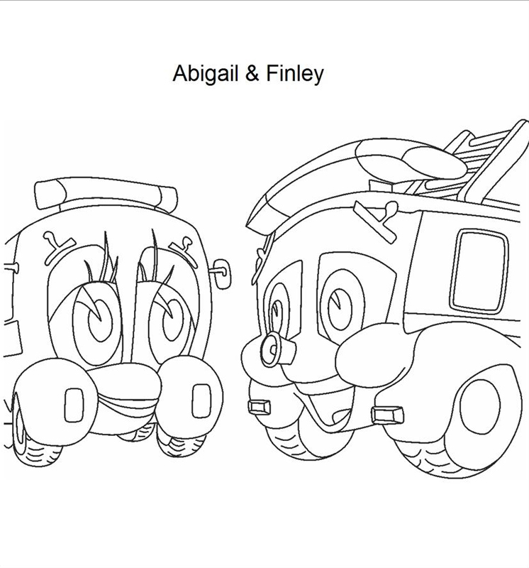 Descriere: Plansa de colorat cu masinile Abigail si Finley.