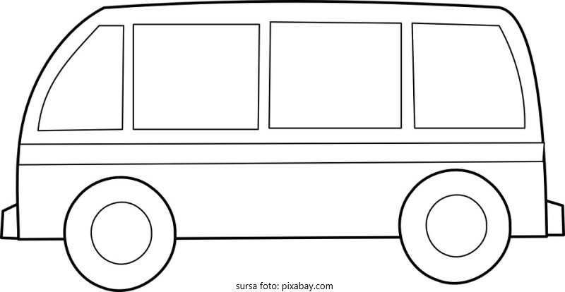 Descriere: Plansa de colorat cu un microbuz.