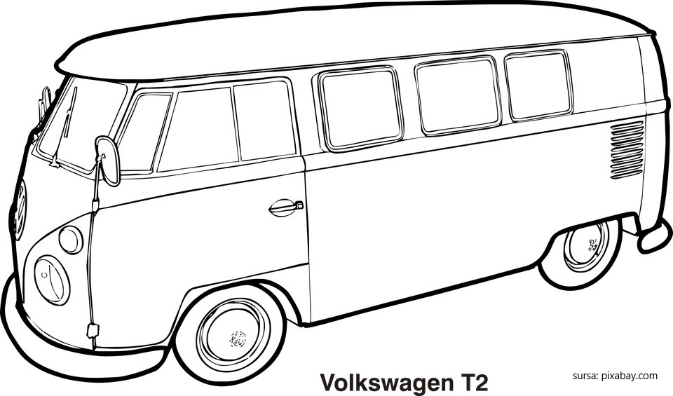 Descriere: Plansa de colorat cu un microbuz Volkswagen T2.