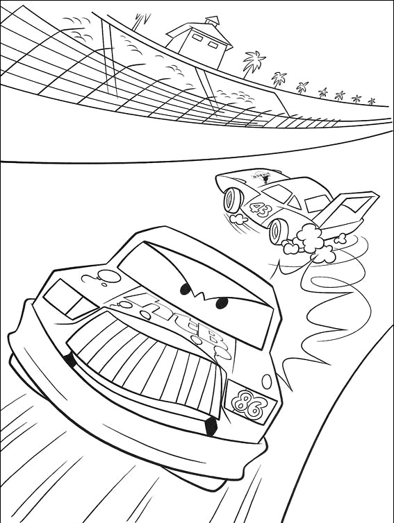 Descriere: Plansa de colorat cu Chick Hicks care il scoate pe Rege din cursa.