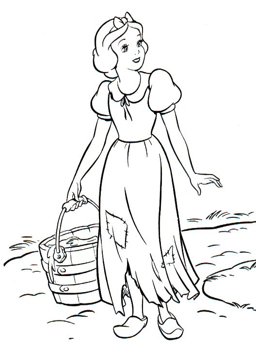 Descriere: Coloreaza printesa Disney, Alba ca Zapada cand vine cu apa de la fantana.