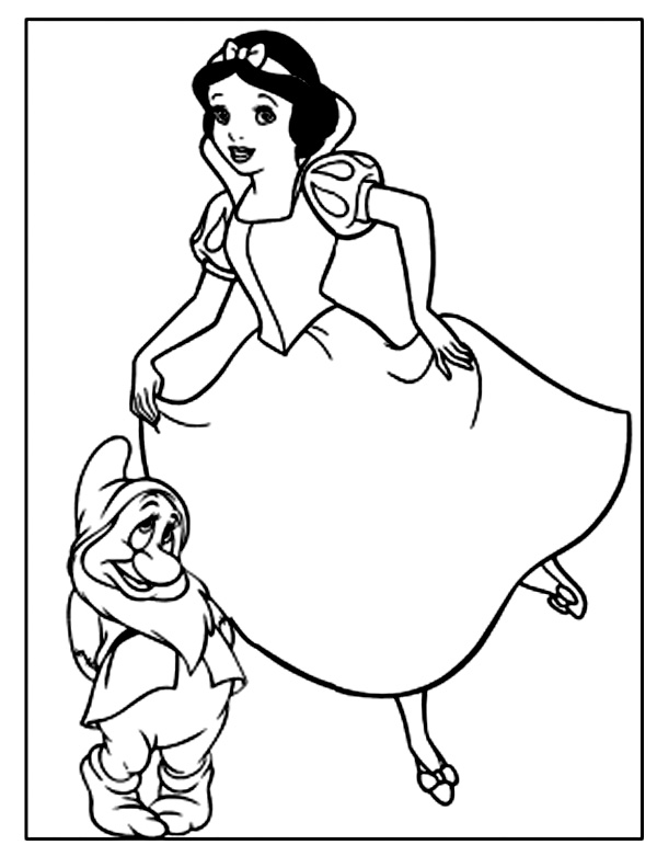 Descriere: Plansa de colorat cu printesa si piticul.