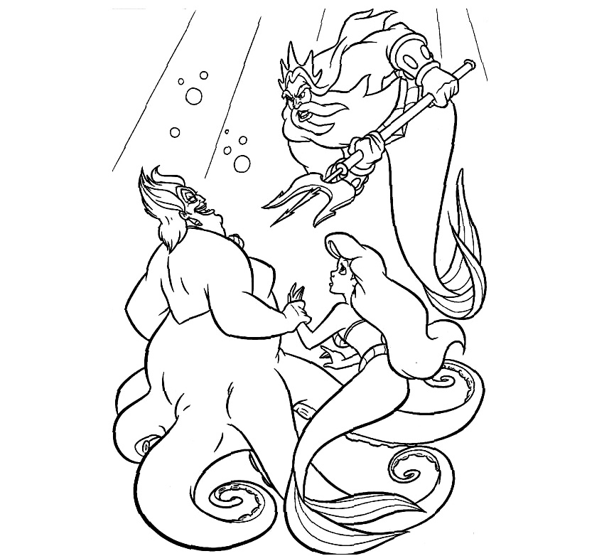 Descriere: Plansa de colorat cu Mica Sirena tinuta de vrajitoarea Ursula. Regele Triton este tatal lui Ariel si are de gand sa o puna la punct pe Ursula.
