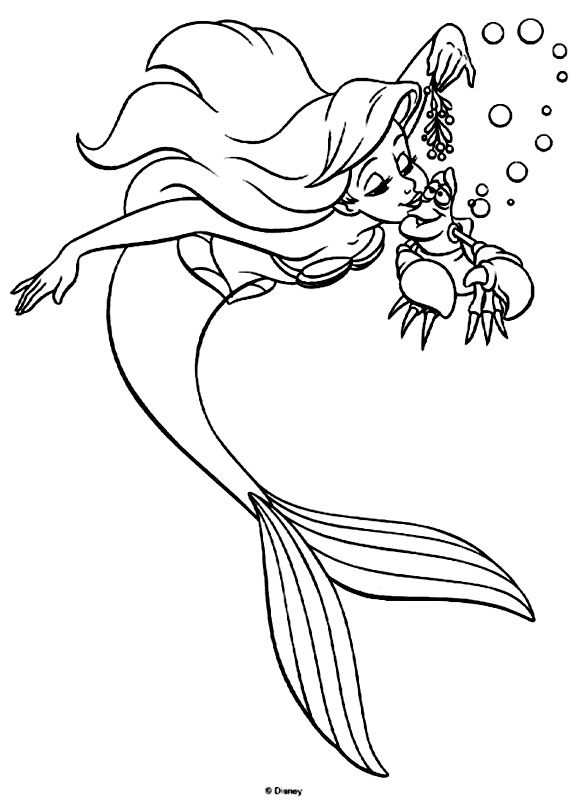 Descriere: Coloreaza plansa cu mica sirena, Ariel si crabul Sebastian.