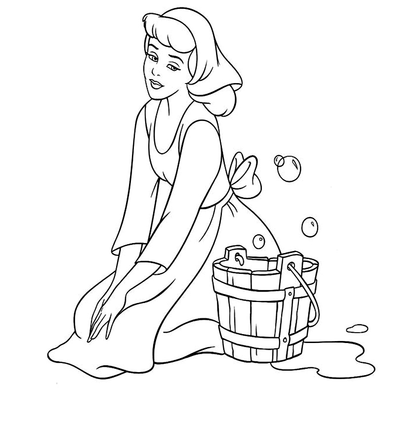 Descriere: Coloreaza plansa cu Cenusareasa care face curatenie in casa in loc sa se pregateasca de balul printului.