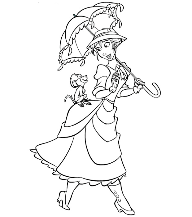 Descriere: Coloreaza plansa cu Jane de care s-a indragostit Tarzan.