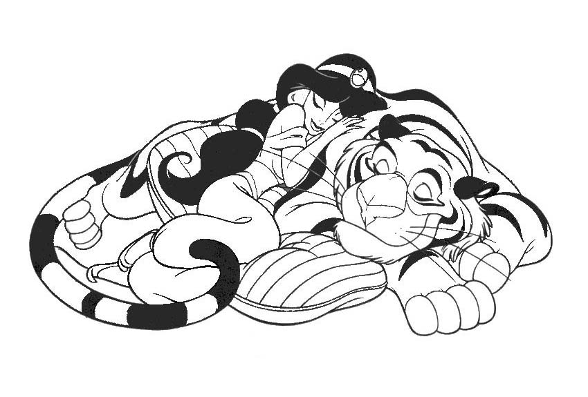 Descriere: Coloreaza printesa Jasmine si tigrul Rajah.