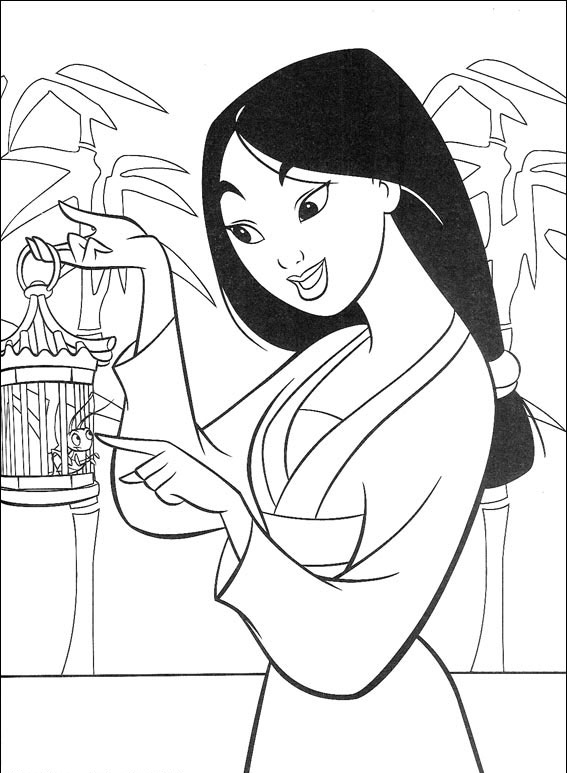 Descriere: Coloreaza plansa cu Mulan ce sta de vorba cu o micuta insecta.