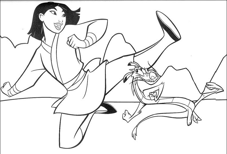 Descriere: Coloreaza plansa cu cu Mulan la antrenamente.