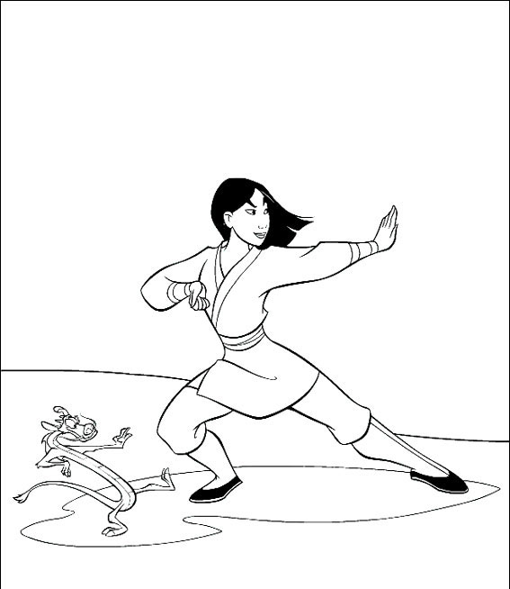 Descriere: Coloreaza printesa Mulan si pe Mushu.