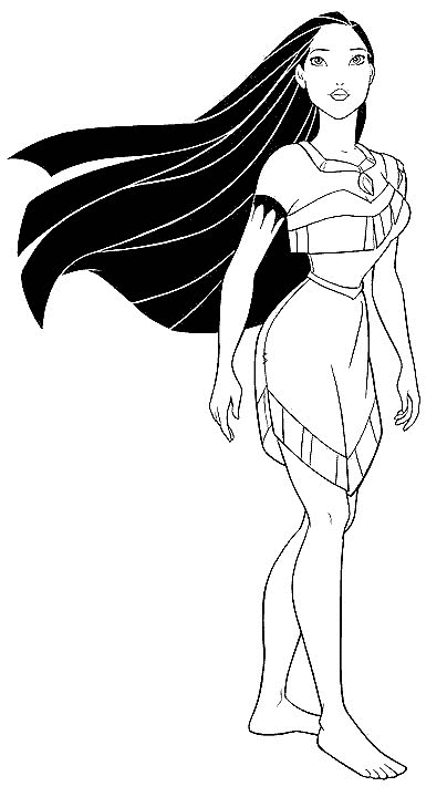 Descriere: Coloreaz-o pe frumoasa Pocahontas din plansa de colorat cu desene animate.