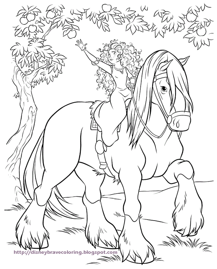 Descriere: Desen de colorat cu noua printesa Disney, Merida.