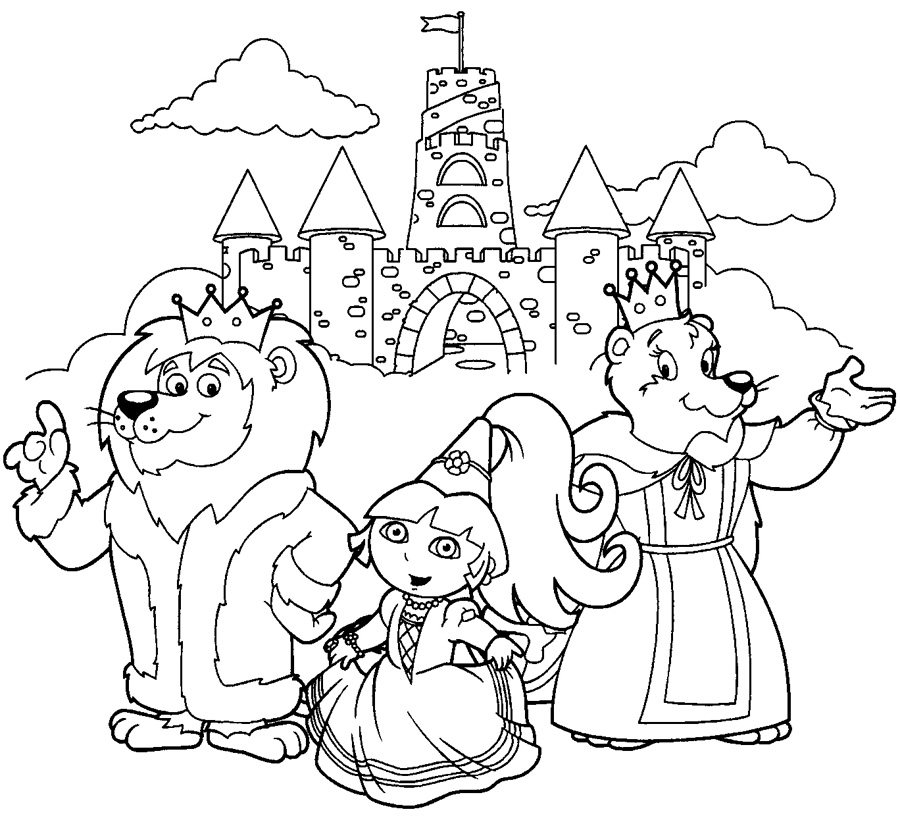 Descriere: Coloreaza desenul in care Dora apare langa animalele care conduc regatul.