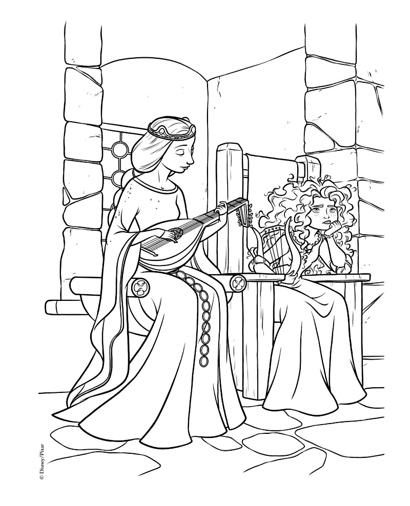 Descriere: Plansa de colorat cu regina si printesa neinfricata din desenele animate Brave. Oare la ce se gandeste Merida? Pana aflam hai sa coloram aceasta plansa cu printese!