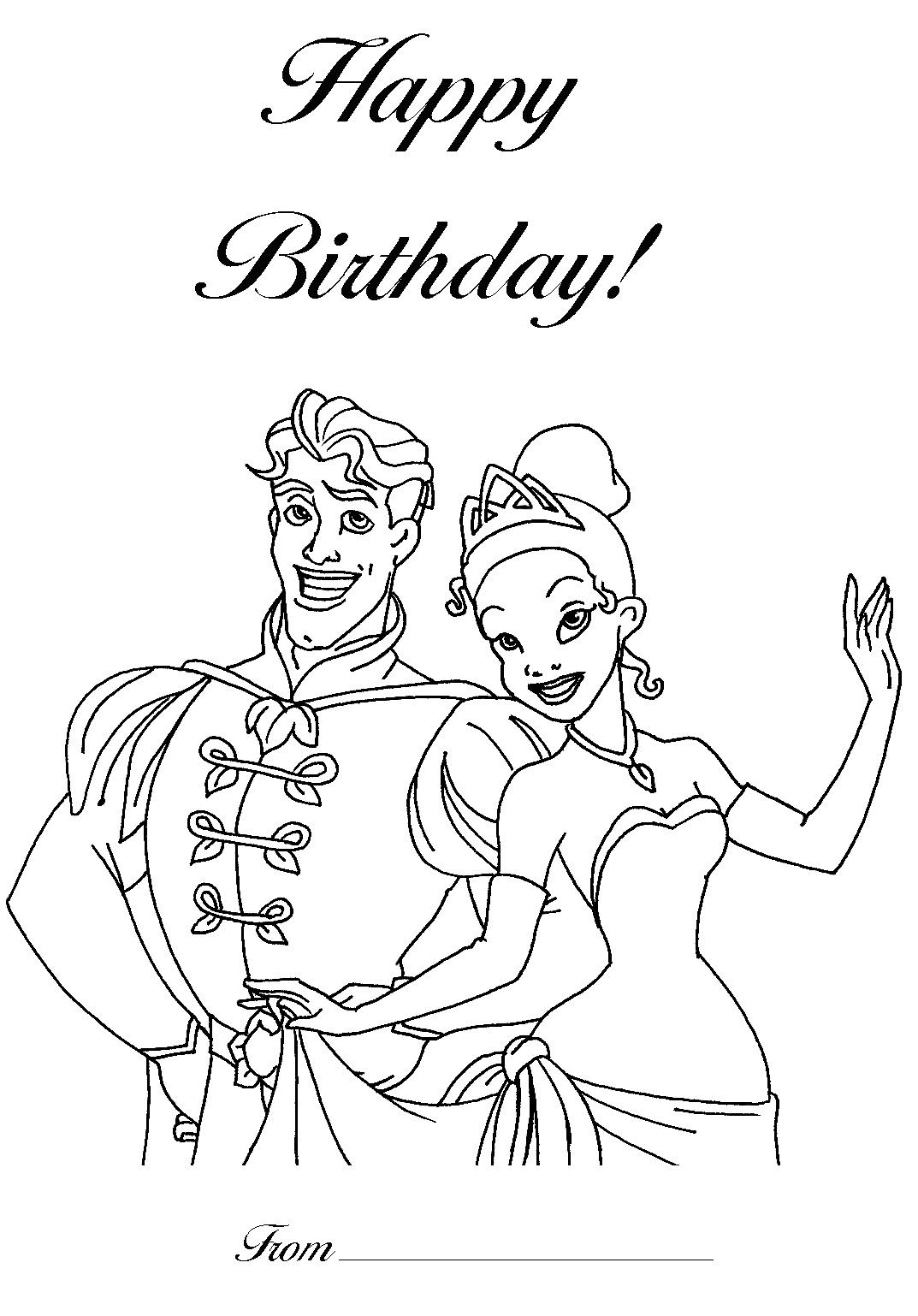 Descriere: Plansa de colorat cu o felicitare de la Tiana si print.