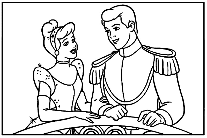 Descriere: Plansa de colorat cu Cenusareasa si printul la balconul palatului.