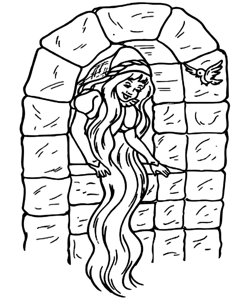 Descriere: Rapunzel se uita dupa print. Coloreaza aceasta plansa cu printese.