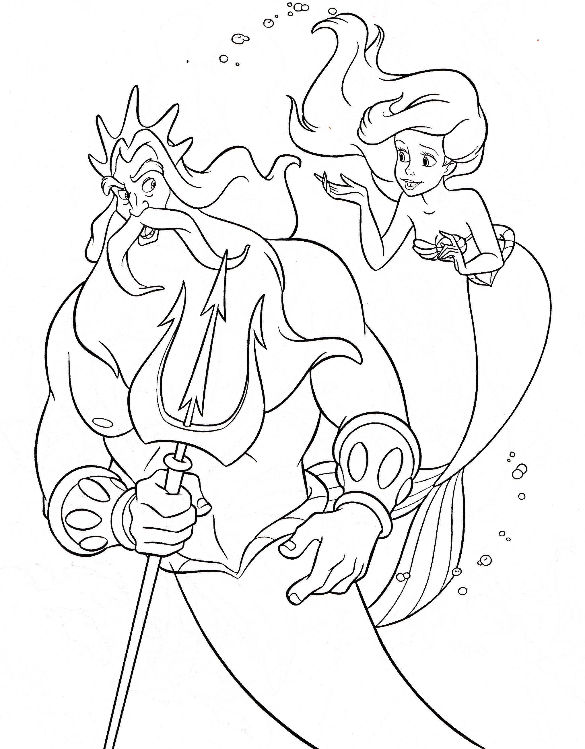 Descriere: Coloreaza plansa cu Ariel care vorbeste cu tatal sau, regele Triton. Oare ce i-ar putea spune?