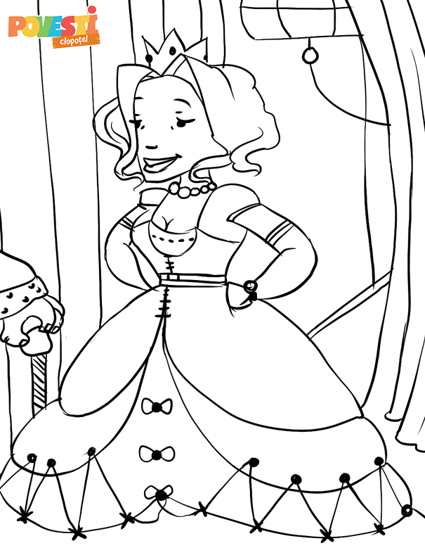 Descriere: Plansa de colorat cu regina din povestea Neghinita.