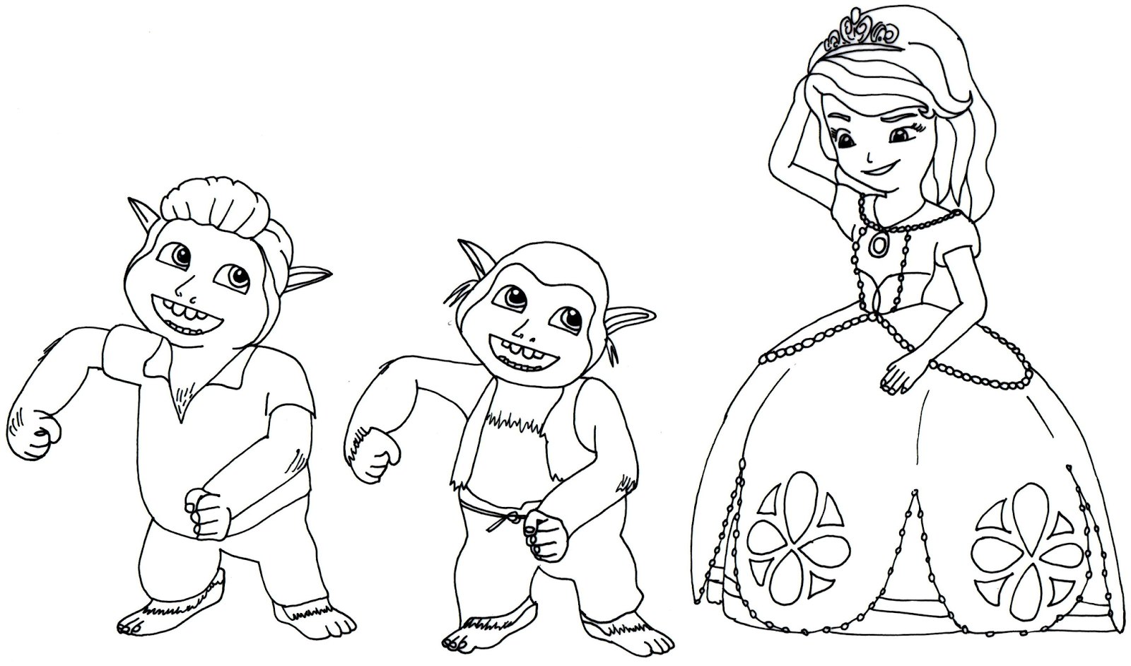 Descriere: Plansa de colorat cu printesa Sofia Intai si micutii troli.