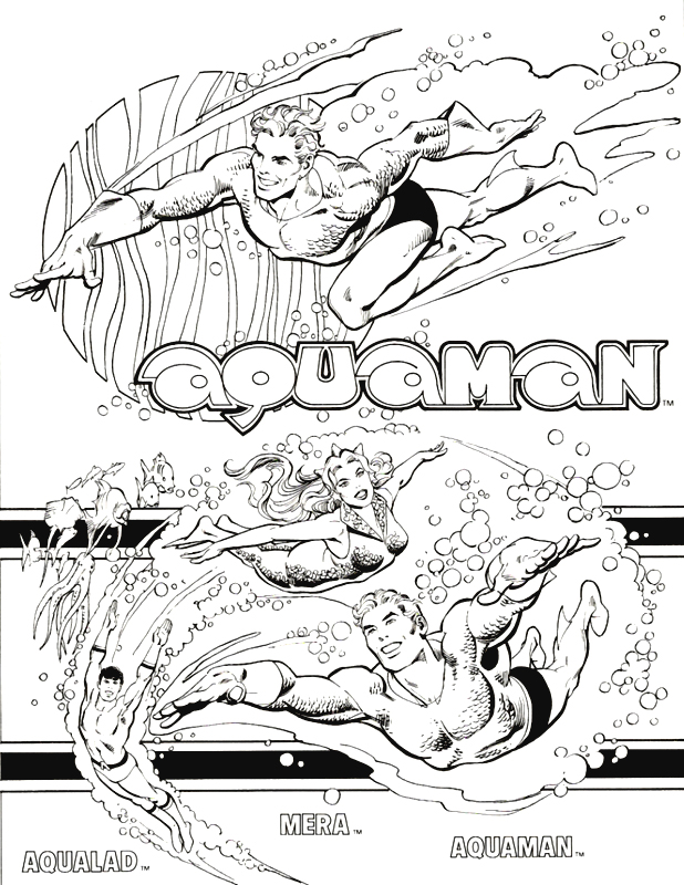 Descriere: Plansa de colorat cu Aquaman si prietenii sai.