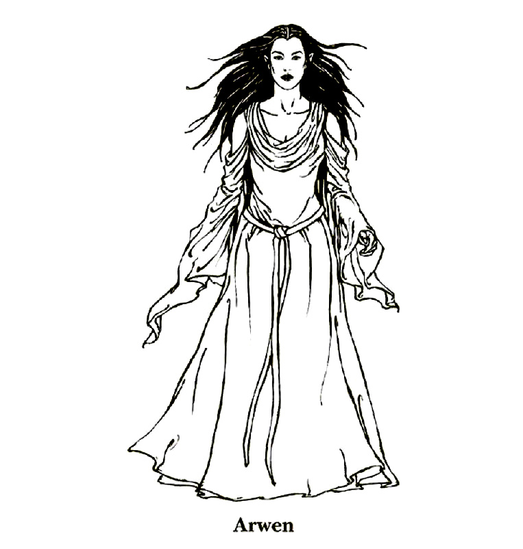 Descriere: Plansa de colorat cu Arwen din Stapanul Inelelor care il salveaza pe Frodo de la moarte.