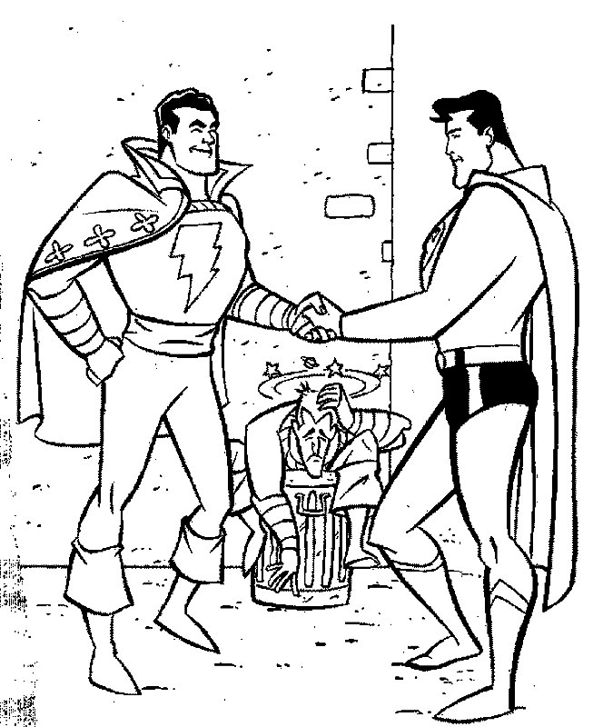 Descriere: Plansa de colorat cu Capitanul Marvel si Superman.