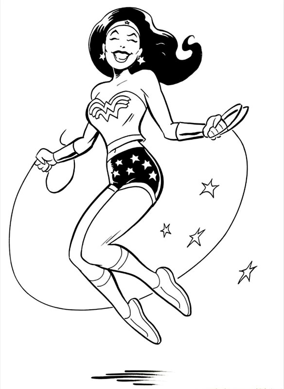 Descriere: Plansa de colorat cu Wonder Woman sarind coarda.