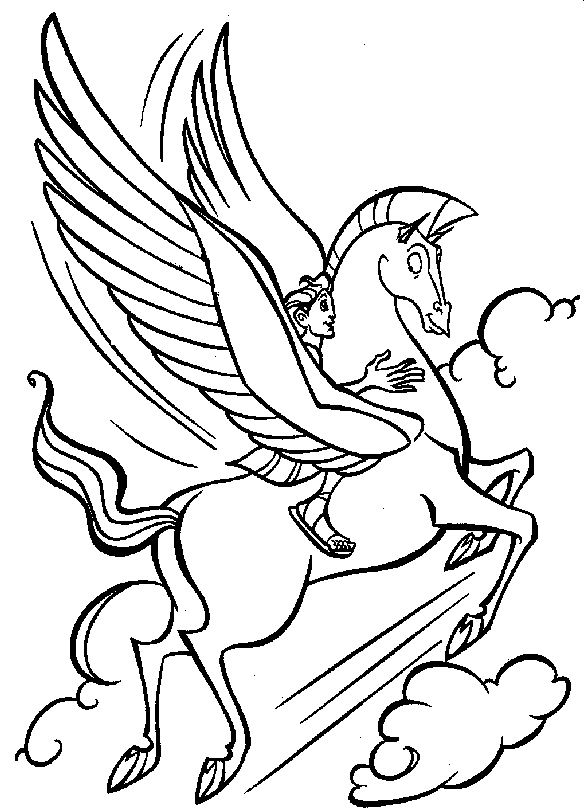 Descriere: Coloreaza plansa cu supereroul din mitologie, Hercule care taie vazduhul cu Pegas, calul sau inaripat.