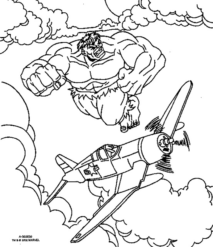 Descriere: Plansa de colorat cu supereroul Hulk care incerca sa prinda un avion.