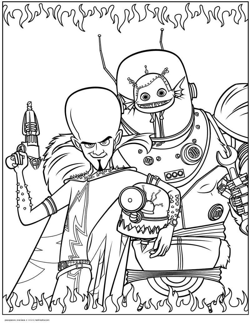 Descriere: Coloreaza plansa cu Megamind si creatura sa.