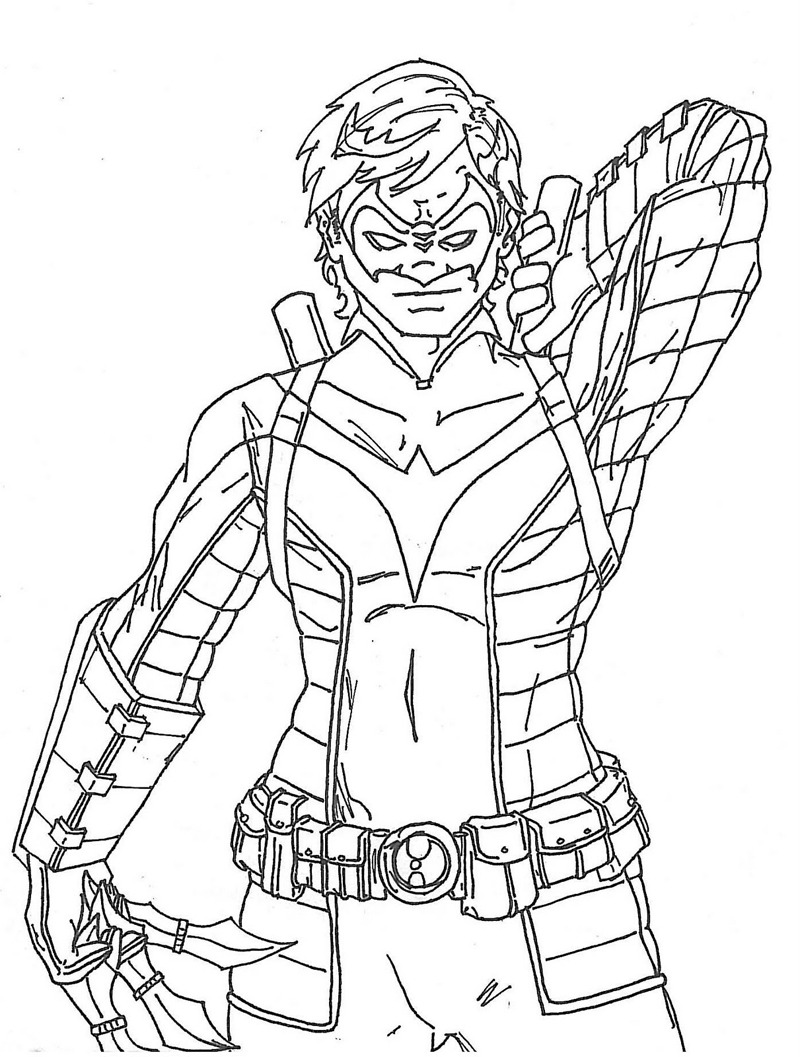 Descriere: Plansa de colorat cu supereroul Nightwing.