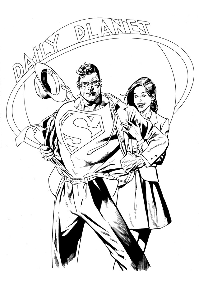 Descriere: Plansa de colorat cu Superman care lucreaza la cotidianul Daily Planet.