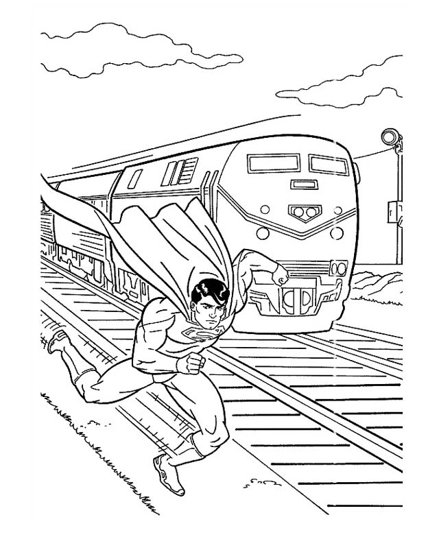 Descriere: Plansa de colorat cu Superman care trebuie sa ajunga inaintea unui tren.