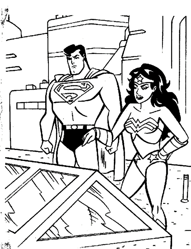 Descriere: Plansa de colorat cu Superman si Wonder Woman.