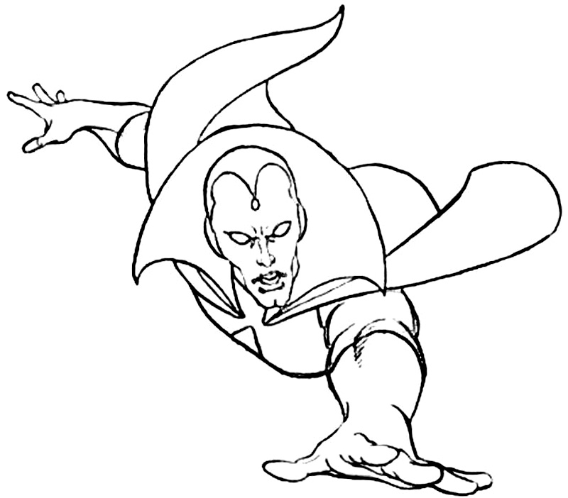 Descriere: Plansa de colorat cu supereroul Vision.