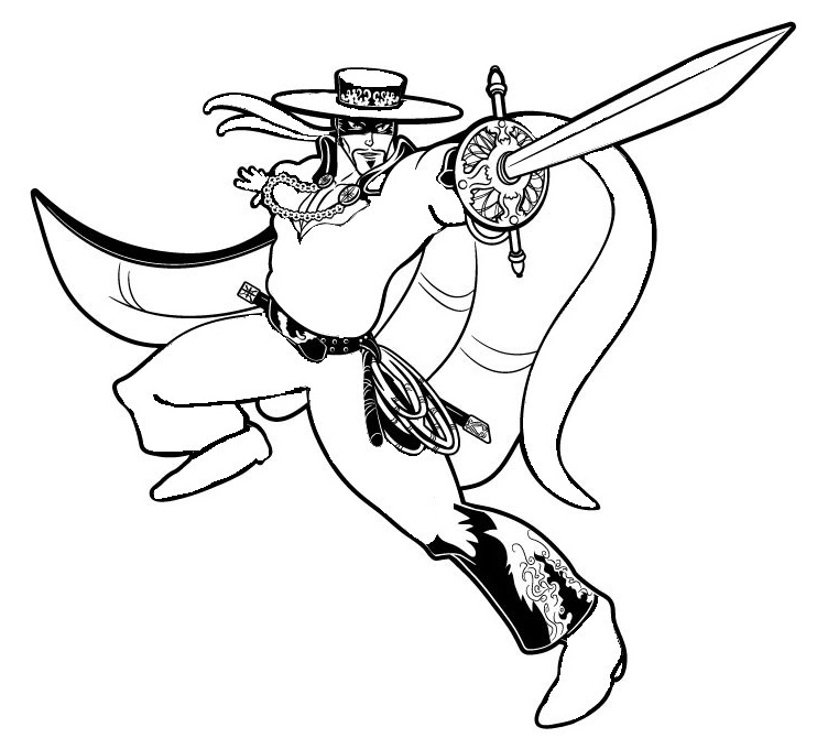 Descriere: Plansa de colorat cu supereroul dreptatii care isi lasa semnul Z cu sabia pe unde trece.