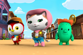 In Vestul Salbatic cu Serif Callie este un serial vibrant si distractiv care face apel la folclorul vechiului Vest pentru a le transmite copiilor cu varste cuprinse intre 2 si 7 ani caracteristici sociale si lectii referitoare la cum sa fii un bun prieten si vecin. Protagonista serialului animat este Callie, o pisicuta-serif Calico ce se ocupa cu mentinerea pacii în orasul ei aflat la frontiera, Nice and Friendly Corners,folosindu-se de lasoul ei magic si de abilitatile de cowboy. Ea este însotita de Peck, loialul ei asistent, si de Toby, camaradul lor adorabil.